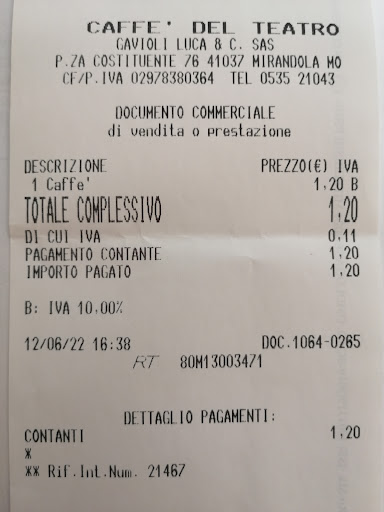 Read moreUn luogo centrale che dovrebbe essere il fior fiore di Mirandola e invece: esterno con tavolini arrugginiti e posacenere ovunque.Costretti ad assorbire il fumo delle persone sedute accanto al tuo tavolo senza distanziamento. Caffè e cappuccino freddi ancor prima di arrivare al tavolo.Paste vecchie e dure come una roccia. Cameriera maleducata e invadente. Neanche il tempo di tirare fuori i soldi che già li ha tolti dalle mani... Se lo provi lo...
