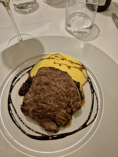 Read moreIncantevole! Atmosfera davvero molto accogliente tanto quanto il benvenuto da parte dello staff! Tutti molto gentili, con il sorriso sul volto, porta molta serenità. Ci hanno accompagnato al tavolo, hanno raccolto i nostri cappotti e ci hanno fatto accomodare. Mi sono sentita a mio agio come se fossi a casa mia, bella sensazione. Menù vasto di scelte di vini, dagli antipasti al dessert, anche quest'ultimi accompagnati da diversi vini. Scelto: bollicine per la cena, ovviamente! Partiamo con la torta degli ebrei, gentilmente ce l'hanno divisa in tre, l'abbiamo usata come entratina anche per assaggiarla ed era veramente ottima, servita calda, gustosissima! Io prendo l'antipasto, uno sformato di zucca con parmigiano e prosciutto, si scioglieva in bocca, veramente godurioso! Per paura di lasciare qualcosa, ho saltato il primo ma sono stati presi due tortellini, uno alla crema di parmigiano e uno in brodo, a detta di chi era con me erano eccezionali! Passiamo ai secondi: ho preso i medaglioni di maialino accompagnato ad una salsa di mele (cannella) che era la fine del mondo! Mai mangiato una carne cotta così, a tagliarla sembrava burro! Spettacolare ragazzi, ma che ve lo dico a fare!!! Si arriva ai dessert: ho potuto assaporare un tortino di mele al profumo di cannella (si, mi piace la cannella 😂) accompagnato con gelato alla crema... Io commossa, era qualcosa di eccezionale!!!! Le altre due donzelle hanno preso una millefoglie e un semifreddo, non ho fatto in tempo a fotografarli, ma suppongo che fossero buoni 😂 Dagli antipasti al dolce sono stati presentati con un impiattamento molto pulito e armonioso. È stato tutto perfetto! A fine serata ci hanno riportato i nostri cappotti e si passa al conto. Si è speso il giusto, vista la qualità dei piatti direi che pensavo si spendere di più, ma sarebbero stati comunque meritatissimi! Voglio fare i miei complimenti e... Chiaramente...