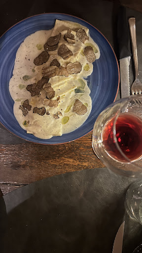 My recommendations: The crostino with sausage and pecorino is to die for, and the black summer truffle cacio e pepe ravioli is one of the best things we've eaten on our Italy road trip thus far (a week in) 😍 just phenomenal. Lastly, the pork sausage with red onions and pork chop with truffle were excellent. You can't go wrong ordering those.