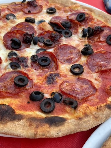 We enjoyed a CĂČ Piccantin (sausage, spicy salami, onions, spicy sauce and mozzarella) and a LâIndiavolata (spicy salami, nduja, olives, tomato and mozzarella). The toppings were first rate, and the crust was crispy, delicious wood-fired perfection.