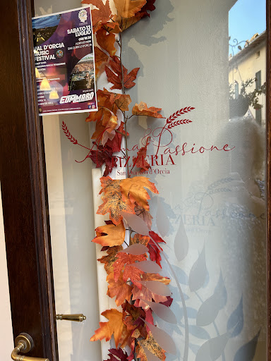 This is a great little resto on Piazza della LibertĂ in San Quirico DâOrcia. The folks working there are super friendly. They clearly have a great vibe amongst themselves and with their regulars - and they play great music. We must have Shazamed about a half dozen songs from their playlist! This makes for a great atmosphere to accompany their delicious pizza.