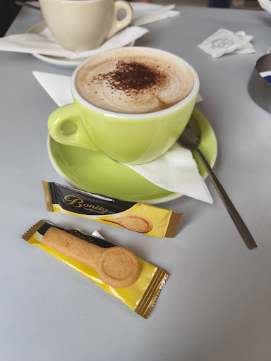 Bar tranquillo, molto luminoso e moderno. Tavolini esterni diretti sulla piazza coperti dalla tenda. Caffe buono e barista molto simpatica.. brioche buone. Unica pecca il bagno.. Da un locale così moderno con strisce led sul bancone e dietro le bottiglie, si passa a un bagno stile casa della...