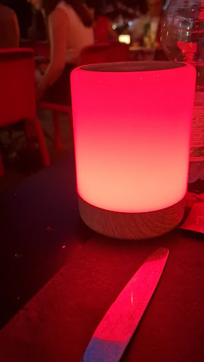 Quando è iniziato a fare buio, hanno avuto l'accortezza di portare delle lampade ai tavoli (quelle ricaricabili che cambiano colore all'occorrenza), rendendo l'atmosfera più intima e allegra.