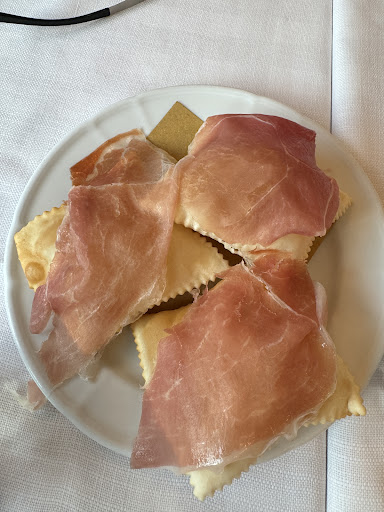 gnocco e tigelle: come nella tradizione sassolese con lievito ma tutto lo gnocco e le tigelle correttamente cotte anche all'interno. Il rapporto di parte fritta e "il pane" dello strato interno hanno rispettato il sapore dei salumi che si distingueva e contrastava con tutte le sue parti. La pasta di concia per le tigelle era tradizionale e perfetta e se alla fine la bocca non odorava d'aglio il suo contenuto si sentiva ottenendo una concia perfetta anche del tipo solo "pane unto" cioè senza l'aggiunta del formaggio. Il formaggio grattugiato giusto come conservazione, grattugiatura, maturazione. Ho assaggiato i salumi prima col pane e entrambi pane e salumi sono di ottima qualità. Abbiamo preso un piatto di tagliatelle al ragù, buono e canonico il ragù e il rapporto tra ragù e pasta; la tagliatella era ottima da mangiare anche senza l'aggiunta del formaggio. Non secco, non unto, il piatto al massimo avrebbe potuto essere appena un po più bagnato per fare un plus dopo le 5 stelle(). Torta di amarena, frolla e marmellata di alta qualità poteva andare al superiore delle 5 stelle con una marmellata con pezzi più grossi e la laccatura poco più marcata(). Bella sorpresa il vino della cantina di Albinea e Canali, la stessa che con la collaborazione con l'università di agraria ha creato "l'ottocento" una delle etichette più importanti tra i lambruschi essendo nato da una ricerca e composizione di vitigni locali proprio in una zona, quella di albinea che ricordo da decenni avere molti importanti vitigni autoctoni e altrettante ottime vene di terreni con sapori e odori diversi. Il vino preso splendido: bassa gradazione 10 gradi, leggermente abboccato, leggermente acido, forse denominato "lambrusco dell'emilia" per la presenza di ancellotta, ha sotto un sentore che ricorda il maestri; non ingombra anzi, ha fatto buona compagnia per tutto il pranzo. Ottima anche l'acqua a ricordare che le degustazione dei piatti è bene farle prima dopo essersi puliti la bocca con l'acqua per provare poi il vino come accomagnamento. L'acqua bevuta prima, anche all'inizio ci ha confermato il corretto lavaggio dei bicchieri che non presentavano odori di sorta. Una nota finale: ho mangiato molte volte in questo posto, stessa gestione e non ho mai avuto sorprese sulla qualità, sempre ottima e devo dire non non aver mai visto uno scivolone in tutto quello che fa e serve il ristorante dunque, del listino esplorate pure quello che volete! (*)le mancanze per cui non ho dato i plus indicati prima che tecnici derivano pareri personali rimanendo i piatti almeno un 5 stelle per tecnica e esecuzione e dove non ho insisto sulla presentazione trattandosi di...