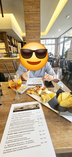 Two of us arrived at around 5PM & chose to sit in versus outside as it was cooler inside. So we were in early for the aperitif (chips, peanuts w/ one red, a lambrusco, an aperol spritz, & later a board w/ a variety of small, square breads w/ either fillings or toppings plus more chips, & lastly their risotto - All were great!). The staff was friendly, helpful & attentive ( we only speak very basic Italian ). Interior was beautiful of course. Grazie mille!