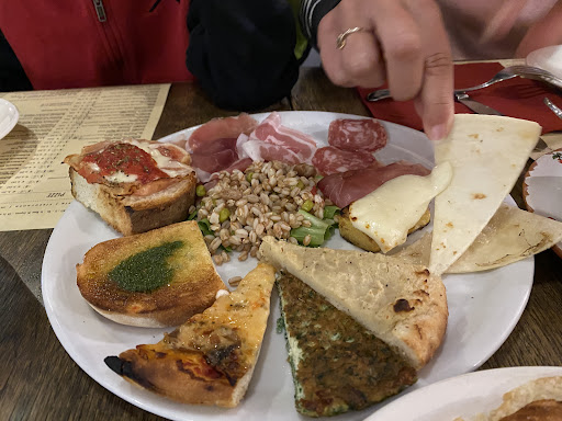 Read morein trasferta da Bologna per recuperare un figlio scout decidiamo di fermarci in questo locale per cenare. Buona l'accoglienza con il proprietario che rimette mano alla disposizione dei tavoli prenotati per farci spazio (il locale non è grandissimo e le prenotazioni sono tante). Locale originale per i complementi d'arredo e la loro disposizione, tutto però in armonia e non esagerato. MenÚ ampio (pizze, schiaccie, antipasti, primi e secondi, dolci): abbiamo preso una schiaccia con i porcini, un antipasto di montagna, dolce (cheesecake). Tutto veramente buono. Quantità giuste e prezzo onesto. Consigliato vivamente se ci si...