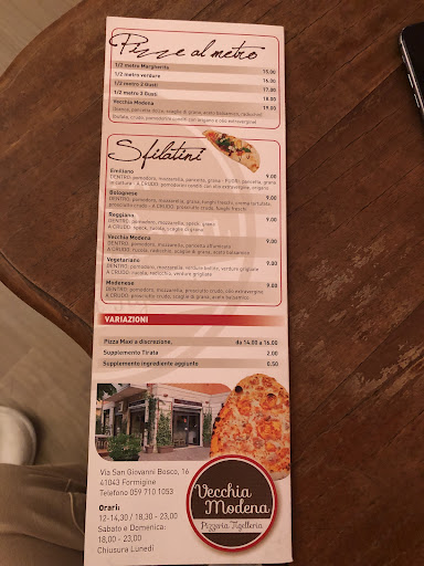 Read moreSarebbe bello se si offrissero pizze vegane con formaggi vegetali e non solo un pó di verdure, ma mi rendo conto che l'evoluzione verso un mondo senza crudeltà animale è lenta e che Formigine è parecchio arretrata, detto questo, la pizza mezzo metro è gommosa, mentre quelle rotonde troppo sottili. Il...