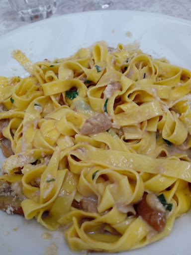 Read moreDi recente abbiamo pranzato presso questo ristorante apprezzandone in particolar modo la genuinità delle materie prime utilizzate. Giunti in loco verso le 12.30 🕧, siamo stati cordialmente accolti dal ragazzo 🧑🏻 al bancone che subito ci ha accompagnati ad un tavolo libero. In breve lo stesso ci ha consegnato i listini 📋 raccogliendo la nostra ordinazione relativamente alle bevande (un paio di bottiglie d'acqua 💧, una naturale l'altra frizzante). Alla fine abbiamo optato per due primi piatti (tagliatelle al ragù 🍝 e pappardelle alla lepre) e un paio di contorni. Per concludere, altrettanti dessert (crema catalana) e un caffè ☕. Tutto davvero molto buono 😋 e ben cotto, soprattutto in considerazione della qualità degli ingredienti di base (squisita la carne di lepre). Non proprio alla stessa altezza il servizio (qualche sbavatura qua e là) che comunque si è rivelato complessivamente sufficiente. Rilassante e casereccia l'atmosfera generale. Prezzi nella norma. I bagni 🚾, benché puliti e in ordine 🚽🧻🧴, avrebbero forse bisogno di una rinfrescata. Strategica la posizione visto che la struttura si trova in pieno centro lungo la principale via da passeggio 🚶🏻♂️. A noi è piaciuto quindi lo...