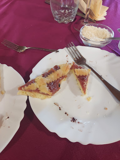 Read moreFerragosto da dimenticare. Prenotato il turno delle 14:00, siamo 13 persone comprese 3 anziane, ci arriva l'acqua del rubinetto dopo 1 ora e gli antipasti alle 15:30 (3 vassoi di affettati, dei quali uno sfamava a malapena due persone) con 1 sacchetto di tigelle, nemmeno una a testa. Il vino da chiedere, quello della casa imbevibile sapeva di aceto, abbiamo ripiegato per fortuna sui pochi vini in bottiglia che c'erano. 2 camerieri per servire tutti, uno dei quali si taglia un dito con un coltello, spacca i bicchieri, sbaglia continuamente gli ordini, a portare i bicchieri e i piatti, due dei quali macchiati del sangue del suo dito e che fuma ogni tanto in cucina col collega, mentre tutti i clienti aspettano da ore come noi. Ci siamo dovuti alzare continuamente per prendere vino, acqua, bicchieri, ecc. Arriva il tris di primi alle 16:00, carne e patate fritte completamente freddi : gli stessi tre vassoi degli antipasti e ci viene detto che le porzioni sono per 13. Ovviamente c'è chi rimane senza mangiare e richiediamo un altro vassoio di primi che arriva dopo un'altra mezz'ora. Alle 16:30 il tris di secondi, sempre porzioni per 6 persone, ma siamo ancora in 13 a tavola. Finiamo in bellezza coi dolci sempre in porzioni misere, qualcuno coi capelli dentro, circondati dalle mosche dall'inizio alla fine e i caffè che sanno di acqua sporca. OVVIAMENTE NON ci rimetteremo più piede e siamo andati via tutti...