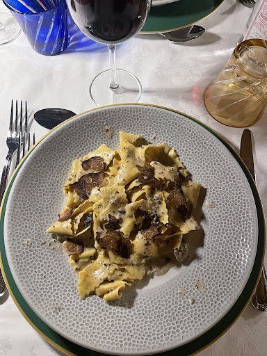 Read moreLocale super conosciuto e di cui tutti mi hanno parlato benissimo, ben noto per i lunghi tempi di prenotazione, dettaglio che fa sicuramente crescere le aspettative (quantomeno nel mio caso). Riesco a prenotare per la sera di Pasqua. Arriviamo e mi colpisce subito l'esterno, molto tipico, bellissima la torre illuminata di sera. Ci sediamo al tavolo (6 persone) e ci viene chiesto il green pass ( ho notato che non in tutti i locali lo fanno quindi di questo riconosciamo il merito). Da qui inizia il servizio che è stata senza dubbio la nota peggiore di tutta la serata. Cameriera scortese, scocciata, maleducata. Ho lavorato nella ristorazione e so bene quanto sia stressante lavorare specialmente quando per gli altri è festa ma durante il proprio turno credo che si debba adottare un atteggiamento adeguato al ruolo che si svolge, cosa che in questo caso è totalmente mancata. Ci propone subito un mix di crostini e siccome non avevamo avuto neanche un menu per poter vedere l'offerta quale fosse mi permetto di chiederlo, domandando anche come funzionasse da loro visto che era per me la prima volta (menu fisso, alla carta, menu speciale di Pasqua... Dubbi di questo tipo e direi anche legittimi) : mi inizia a rispondere quasi infastidita dicendomi che quello che c'era nel menu era quello che lei aveva iniziato a spiegarmi. Partiamo molto male per quanto mi riguarda. Controlliamo i menu e decidiamo in 4 su 6 di fare un bis di primi (indicato sul menu, non richiesta fuori menu da parte nostra) : in buona sostanza oltre a non aver capito la nostra richiesta e ad averci risposto in malo modo perché noi continuavamo a chiedere un'opzione riportata sul menu, ha iniziato ad alzare gli occhi al cielo, ad usare un tono di voce al limite della scocciatura. Io mi domando il perché. Mi domando perché trattare dei commensali come dei perfetti imbecilli quando il tuo lavoro è anche quello di accogliere e spiegare le dinamiche del locale, dare delucidazioni sul menu, risolvere dei leciti dubbi a delle persone che sono lì e che si affidano alla tua esperienza. Ma ok. Capito il disguido, inizia ad insistere per cercare di farci prendere quanti più piatti uguali probabilmente per evitare rogne in cucina, iniziando a tirar fuori problemi di attesa con piatti così diversi e continuando ad avere il solito atteggiamento maleducato. Intimiditi da questo modo di fare alcuni del gruppo hanno addirittura rinunciato alla scelta del bis di primi, puntando ad un piatto singolo. I piatti sono arrivati dopo 15 minuti (nel mentre erano arrivati gli antipasti) e TUTTI NELLO STESSO MOMENTO. Che dire quindi? Cibo fenomenale, i crostini funghi e tartufo penso uno dei piatti più buoni mai mangiati, così come i tagliolini al tartufo. Il servizio definirlo PESSIMO sarebbe riduttivo onestamente. Probabilmente sarà stato un caso, visto il numero di buone recensioni, ma so di non essere stata l'unica ad aver ricevuto questo trattamento. E non si può negare che un brutto servizio, per quanto si possano mangiare piatti squisiti, rovina la serata. Al proprietario : i clienti si fanno km su km per venire da voi, onore e merito alla vostra bravura indiscussa, ma ricordate che queste attenzioni fanno...