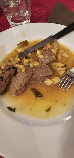 Cena di capodanno da dimenticare. Il menù proponeva alla carta 4 tipi di vino rosso in bottiglia. Non ne avevano nessuno disponibile. Ripiegato su una bottiglia fuori menù meno buona del Tavernello. Ordinato come primo zuppa fagioli e porcini. Il cameriere torna dalla cucina e ci dice che la zuppa è finita. Ordiniamo una cotoletta e arriva una ciabatta di gomma surgelata. Avevano finito i calici per il vino per gli altri tavoli. Abbiamo ordinato due tagliate di Angus con funghi porcini che abbiamo avanzato. Lascio a voi il giudizio dalla foto. Per terminare abbiamo chiesto 2 Montenegro ma, ovviamente, era finito anche quello. Giunto alla cassa, il proprietario mi ha chiesto se era andato tutto bene. Con aria di sufficienza ho risposto sì, tanto, sono sicuro che del mio giudizio non gliene fregasse assolutamente nulla. Peccato per questo schifo perchè il ristorante si trova nella via...
