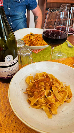 Read moreUn amore madre e figlio che viene trasmessa e riprodotta in ogni piatto. Ogni forchettata ti riporta tutta la tradizione di Pavullo e Modena in generale. Abbiamo mangiato dell' ottima polenta accompagnata da cremosissimi funghi,pappardelle al ragù di cinghiale e bocconcini di pollo con funghi e crema di tartufo..il tutto accompagnato da un ottima bottiglia di vino. Ottimo per rapporto qualità/prezzo sicuramente nella media e alla portata di tutti. Titolare gentilissimo che alla fine mi ha gentilmente offerto un golosissimo liquore anice e liquirizia Sicuramente consigliato se volete mangiare pasta fresca fatta in casa come la tradizione vuole Piatti visivamente appetibili e osteria davvero carina e intima C'è anche un piccolo spazio per fare giocare i bambini,una tavernetta Ci...