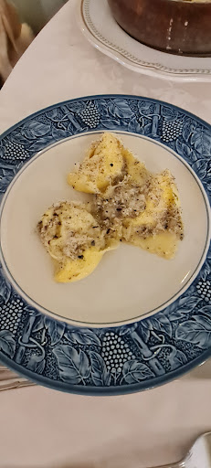 Antipasto: gnocco fritto vecchia scuola, ottimo il prosciutto, meno la mortadella. Gnocco fritto nella media, nulla di stratosferico. Primo: tagliatella della Nunziadeina, sublime la pasta fatta a mano, il ragù al prosciutto, tanto declamato, nulla di eccezionale e un po' secco. Secondo: braciolette di agnello sambucano alla "scottadito" e patabeppe. Carne non molto di qualità e patate nulla di wow, sicuramente non giustificano il prezzo di 12€. Dolce: torta di mele con crema inglese, la crema era liquefatta. La torta nella norma. Il servizio del carrello carino ma forse bisogna lavorare sulla presentazione. Anche la pasticciera un po' impacciata. Vino eccezionale scelto dalla carta dei vini che, nel complesso, ahimè, un po' deludente. Però Villa Gresti di San Leonardo, una bomba! Servizio un po' acerbo dei ragazzi. Non mi ha proprio conquistata. Locale carino (anche se io ho visto il corridoio). Ambiente rilassante. Lo consiglio? Non credo. Ci ritornerò? Forse per provare i tortellini.