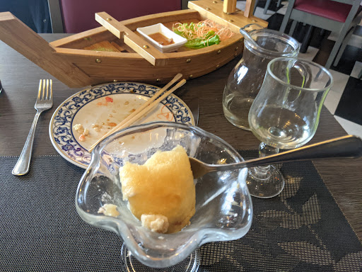 The decor may be rather jarring and the description of Chinese Japanese Thai fusion might be ambiguous. I had a decent sushi meal for a reasonable price and staff are friendly and helpful. However, they didn't clear previous courser away, leaving me eating ice cream while staring at the debris of my sushi. However, the sushi selection with chips on the side, a half litre of wine and dessert came to...