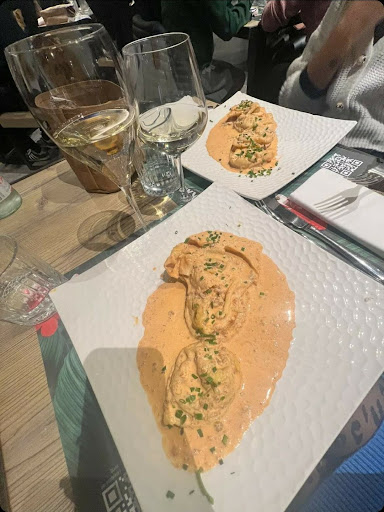 Della serie "Cene di San Valentino imbarazzanti e dove trovarle" Entriamo in questo ristorante che lavora con piatti e nomi altisonanti e veniamo fatti accomodare in una fila di tavoli allineati a stretto contatto modello speed date a intimita zero Primo contatto col cameriere avvenuto dopo soli 33 minuti di attesa, tempo in cui due tavoli dopo di noi erano gia a fine primo dopo l'antipasto Antipasto consistente in una tartara di tonno marinata con amore arrivata senza marinatura (E quindi senza amore lol) le cui dimensioni facevano sentire le tartare del giapponese dall'altra parte della strada dei veri e proprio colossi di titos Primo di rose al ripieno al salmone selvaggio (Ripieno decisamente scarso) mantecate con erbe di montagna (Erba cipollina) Secondo di filetto di branzino (Due forchettate) cotto al cartoccio senza pelle, quindi decisamente troppo asciutto Dolce di red velvet con carezza di mascarpone senza uova e cascata di ribes afrofisiaco (Il ribes é finito su "chi l'ha visto", almeno i nostri vicini di tavolo avevano i lamponi) Ah, quasi dimenticavo il pane richiesto giusto tre volte, ma visto che probabilmente era finito ci sono state portate pezzi di brioches salate "bruschettate" L'importante di queste serate é prebderla in ridere, ma a parte gli scherzi non capisco come nel 2023 ci si possa alzare con la fame da una cena a 4 portate La cosa bella é ritrovarsi tra vicini di tavolo a mangiarsi un crispy...