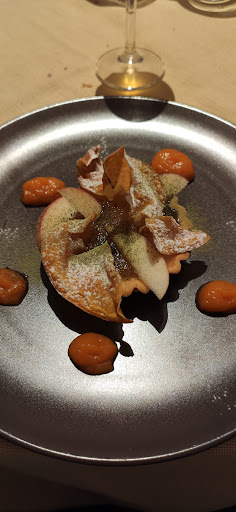 Locale in piazza del paese, direi in locale del comune. Idea di variazione di una vecchia osteria in cui siamo capitati ieri senza preparazione. Arredamento spartano. Il menu è con molte pretese: i piatti hanno descrizioni da nouvelle cousine, davvero fuori stile creando asoettative sperimentali che poi non sono mantenute, purtroppo. I prezzi sono da sapori di alta qualità. Purtroppo le cose sono un poco rigide, la qualità è davvero limitata e isapori non adeguati. I piatti sono progettati per stupire mescolando molti nomi stimolanti che all'assaggio sono poco veritieri e un poco deludenti. Il merluzzo in crosta è solo a vapore con scarso sapore. Buoni gli zucchini. La zuppa inglese sono quattro palline minusole e poche strisce di pan di Spagna asciutti. Da migliorare. Attese lunghe delle cose ordinate.
