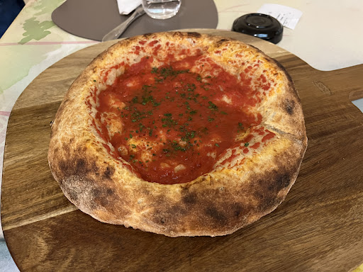 Read moreSono stata per la prima volta in questo luogo ieri sera per mangiare una pizza con le amiche. Comodo da raggiungere a piedi per chi vive in centro ma essendo scarsamente illuminato, difficile da trovare. Appena entrate siamo state accolte dai commensali che per la disposizione dei tavoli sono seduti lungo le pareti ai lati dell'ingresso. Dopo qualche minuto di attesa la cameriera ci ha fatto accomodare al tavolo e abbiamo preso visione del menù. Abbiamo ordinato tre pizze che sono arrivate dopo "soli" venticinque minuti, una coca lattina che è arrivata in bottiglietta di vetro, e una bottiglia d'acqua. La pizza era ben condita e nel complesso buona ma l'impasto era così duro che ci abbiamo messo altri venticinque minuti per finirla. Il servizio è stato veloce e discreto, forse anche un po' troppo. La tavola invece era apparecchiata da ristopub e non da ristorante/pizzeria , le tovagliette di plastica e il tovagliolo di stoffa erano inguardabili !... Un vero ristoratore dovrebbe sapere che sono assolutamente antigieniche... ma sicuramente adatte ad un servizio pratico e veloce !!! Lo stile del locale è davvero semplice, aggiungerei solo un po' di colore e, un po' di musica in sottofondo vista la stretta vicinanza dei tavoli (sarebbe più intima la conversazione). Quanto ai prezzi mi sono sembrati nella media, tranne per quella integrale che è venuta a costare circa quindici euro 🤔. Di sicuro...