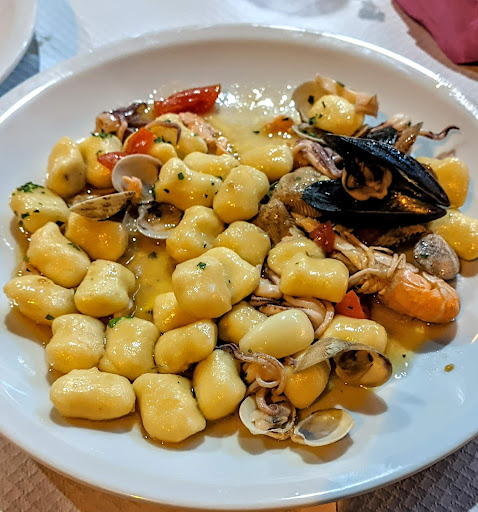 Read moreRistorantino molto interessante trovato quasi per caso, situato su di una strada interna ma a 50 metri dalla via principale, il locale si sviluppa all'esterno sotto di un palazzo ma si sta comodi e soprattutto tranquilli, il titolare ed il cameriere sono molto cordiali e spiegano sempre i piatti che andrete a scegliere consigliandovi nella scelta,noi abbiamo preso l antipasto misto (Freddi e Caldi) che si è rivelato abbondante e ben realizzato con pesce fresco ben lavorato l, senza fronzoli ma con gusto, molto buono lo spaghetto allo scoglio dove il mare si sentiva tutto (ben condito e gustoso) servito direttamente con la padella al tavolo, ottima la frittura, asciutta ben fritta ed abbondante, molto buono infine l'arrosto di pesce dove tra una sogliola, uno spiedino di calamaro, uno scampo ed una rana pescatrice ho trovato i gusti che cerco in un ristorante di pesce degno di questo nome, la sorpresa finale è stata il conto che ritengo basso vista l'abbondanza e la qualità delle portate, il prossimo anno sarà sicuramente tappa fissa durante la nostra vacanza ad Alba Adriatica,...