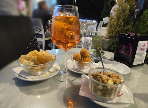 Read moreBar famosissimo a Tortoreto, Abruzzo, lungo la via Nazionale Adriatica. Molto frequentato e noto sia per le colazioni che per i suoi aperitivi. Buone proposte anche a pranzo con ottimi primi della tradizioneabruzzese. L'aperitivo però è davvero top. A poco meno di €10 puoi avere un drink, tramezzini, paninetti e tranci di pizza rossa caldi. Patatine chips, olive e un assaggio di farro con mozzarella, pomodorini e rucola o una pasta fredda. Servizio e gentilezza impeccabili. Location molto carina ed accogliente sia dentro che fuori. Da provare anche loro crema al caffè. Tappa obbligatoria se andate in vacanza a Tortoreto o siete di...