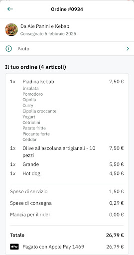 Read moreRead moreVoto ⭐️ 1.3 / Piadina Kebab - decente e mancava la salsa Curry che nn hanno messo, almeno non ho assaggiato il sapore del curry! HotDog - niente di davvero speciale! Patatine - nn erano quelli che avevo ordinato. Mi sono arrivate le Patatine quelle normali che io invece avevo ordinato le Patatine Dippers con Buccia! Olive Ascolane ordinate - ma purtroppo mi sono arrivati solo i Chicken Nuggets che io nn...