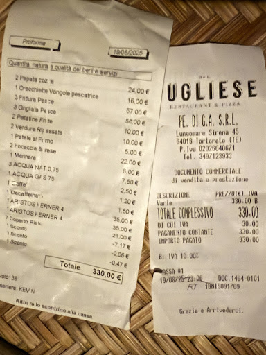 After one hour and 15 minutes one pizza arrives - not the focaccia starters. We stop another waiter, they say they will ask. Nothing happens. After other 20 minutes the dishes start to come out- focaccia with the rest. We had ordered 3 fried fish. Arrived one - we had to go back for the other two. No side dishes (we had ordered two fried potatoes, one backed one, and two cicoria ripassata). We asked for the other two fried fishes - they arrive but completely different from the one before. Sides not to be seen, but arrived the roasted fish. Three portions - pictures attached. Two full ... The third, cold and like spitted in the plate from leftovers (probably what it was! Picture attached). Arrive the sides - we asked cicoria ripassata - obtain zucchini .. WT...