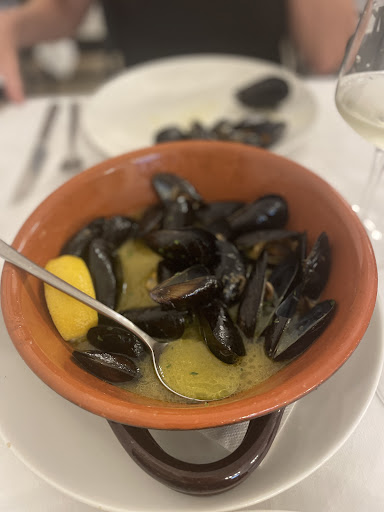 The whole fish al forno (baked in the oven) is fantastic, We stated with mussels (cozze), which were really nice, and we had 2 different types of whole fish cooked al forno. Spigola(which is a sea bass) and a skinned monk fish. The wine choices were really good - we has a very nice Pasetti pecorino that matched perfectly the seafood.