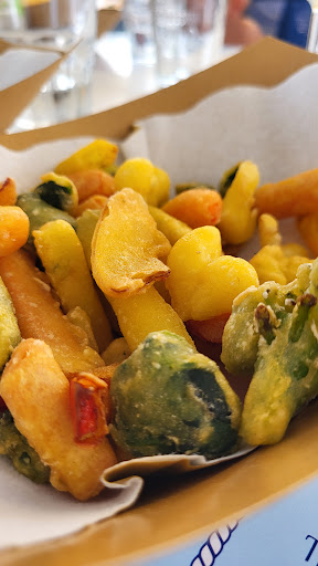 Inserita in un lido non si capisce se è al servizio dei clienti in spiaggia o se è fa a se . Devi lasciare liberi i tavoli per a pranzo e a cena perché devono essere preparati per chi ha prenotato; il cliente che paga 600 euro stagionali per un posto in spiaggia, a come era stato pensato il lido, gradirebbe avere la libertà di starsene seduto a godersi il mare senza problemi. Il gestore sostiene di essere friggitoria e non bar però storce il naso se i clienti si recano allo chalet vicino per un caffè ( sentito personalmente) . Trovo poco professionale essersi dimenticati che ci sono anche i clienti della spiaggia… così facendo, per chi ama vivere la spiaggia fino a tardi, lo invogli a cambiare struttura… in merito alla friggitoria nulla da dire il prodotto offerto è molto buono ( a mio gusto personale il pesce resta un filo crudo… parliamo di frittura di pesce) ; come in tutte le cose vanno provate e poi giudicate perché la recensione è frutto di una mia personale opinione; la consiglio, una visita ne vale la pena anche se i prezzi sono un filo sopra la media. Personale e servizio diciamo un po’ così alternativi…