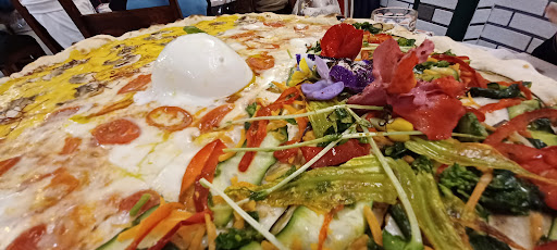 Read moreIn un ambiente molto familiare si viene accolti cortesemente da tutto lo staff,il titolare Evandro è una persona gentilissima che viene personalmente al tavolo per spiegare bene le particolarità della pizza ordinata,e per la nostra c'era tanto da dire,abbiamo ordinato una ruota in 2.....fantastica....c'è la possibilità di suddividerla in 3 gusti diversi,noi abbiamo scelto: Zafferano,con Evandro che viene a mettere il suo oro rosso,uno zafferano pluripremiato e scopri subito il perchè....delicius.... Bufala...con una bella ed ottima mozzarella di bufala al centro Lady,con verdure croccanti,noci,germogli di erba medica e fiori edibili, se li stava mangiando tutti il mio amico,mi sono mangiato a volo un fantastico bocca di leone....questa ragazzi è tanta roba,un viaggio del palato andata e ritorno Asia Europa! Il tutto accompagnato da un litro di ottima birra bionda artigianale locale,e anche lì Evandro potrebbe darvi delle ottime spiegazioni sui lieviti. La tipologia della pizza è bassa e croccantina,non perde di consistenza al centro,la si digerisce già solo guardandola,veramente leggera,complimenti,c'è un grande lavoro dietro,a partire dalla ricerca dell'ingrediente. Tornerò volentieri...
