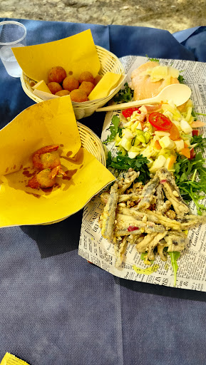 Non ci siamo proprio. Consiglio vivamente il gestore di migliorare l'aspetto gestionale e il rapporto con il cliente. L'unica cosa che va bene di questo locale è quello che non dipende dal gestore, e cioè la bella vista sul mare. Per il resto c'è molto, molto da fare. Cominciamo col dire che per noi è imprescindibile - se mangiamo il pesce - essere sul mare. Avevamo perciò prenotato ben due giorni prima raccomandandoci che volevamo un tavolino in prima fila mare. Invece ci hanno messo molto arretrati, in terza fila. Eravamo arrivati tra i primi, avrebbero potuto eventualmente - come gesto riparatore - spostare qualcun altro che non era ancora arrivato, ma sono stati irremovibili, e già solo per questo saremmo dovuti andare via: dopotutto la nostra prenotazione era chiaramente condizionata alla prima fila mare, tu non me la dai e io non mi fermo. Non so perché invece siamo rimasti e abbiamo fatto male. Secondo problema, la musica. Tutta una cena con Bruce Springsteen sparato a palla nelle orecchie non è secondo me compatibile con la clientela che sceglie un ristorante sul mare: un altro stile e soprattutto un'altro volume, sarebbe stato più gradevole. Poi il servizio: piatti e posate di plastica, roba che manco fossimo ancora al tempo del Covid, e alla faccia delle nuove manie green, plastica e rifiuto indifferenziato a gogo. Il personale molto giovane e inesperto, gentile per come lo si può essere quando si è giovani e inesperti. Il cibo: qualche fritto decente ma le lasagne erano precotte e niente di speciale. Il conto, in assoluto non troppo alto per un ristorante, ma per una situazione del genere, panche da sagra e piatti di plastica forse anche sì. Insomma, un vero peccato che un posto del genere sia gestito in maniera così poco intelligente. Ovviamente non ci torneremo più e lo...