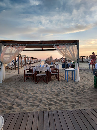 Location gradevole e originale, caratterizzata da tavolini all'aperto direttamente sulla sabbia, vicino alle cabine, ma con un panorama bellissimo sulla distesa di ombrelloni, sul mare e sul tramonto: atmosfera romantica garantita!Mise en place essenziale ma di gusto. Menù di mare abbastanza semplice e migliorabile, ma nel complesso curato. I piatti non sono elaborati e sono cucinati bene: ottimo il roast di tonno, ottimo il fiore ripieno, gradevoli i pici alle arselle ma con qualche riserva di metodo sul condimento e qualche dubbio sulle stesse arselle. Menù dei dessert abbastanza nella norma, ma i dolci proposti sono molto buoni, soprattutto la torta sbriciolona alla frutta. Carta dei vini abbastanza sintetica ma ben costruita, con alcune proposte interessanti, non banali e dal prezzo onesto, come il pigato, i bellavista, i ribolla e un paio di champagne. Staff giovane e forse poco esperto, con piccoli errori (come lasciare i calici e non mettere i flutes quando abbiamo ordinato lo champagne), ma ce la mette tutta per fare una buona figura. Del resto l'ambiente è informale. Uniche note dolenti: considerando i prezzi non bassi delle portate, le porzioni potrebbero essere un po' più corpose (ad esempio, abbiamo ordinato i fiori di zucchina ripieni come antipasto e ce ne hanno portato uno di numero); 10 euro a testa di coperto mi sembra un tantino eccessivo. Comunque è un locale gradevolissimo, sicuramente in...