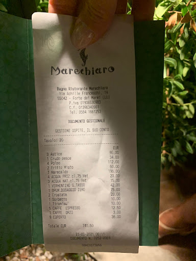 Very expensive place but not really worthy the price. I had a pasta (basic pasta but it costed 30 euros) which was overcooked so difficult to digest. Also my friends had the same problem. The place is very nice, looking directly at the beach which is unusual in Forte. We paid 60 euros each for just one plate and a glass of wine each. A bit to much for a lunch...