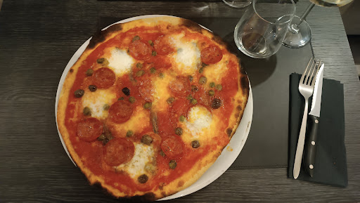 We came round last night (Aug 14th) for a quick dinner, the place is cozy, clean and inviting, there are also places to sit outside, however, we opted for the indoor space with the AC. We chose two pizzas from the menue: first one (Napoli with extra spicy salame - aka abroad as pepperoni) it's a 'pizza rossa' meaning it has also the tomato sauce (anchovies, capers, spicy salame). The other one was 'pizza scomposta ' it's a white pizza - 'pizza bianca' -meaning no tomato sauce (ham, cherry tomatoes, olives and mushrooms). The toppings in both pizzas were of very high quality and very generous. The dow was perfectly cooked, thin and crispy, highly recommend it. We also took two different deserts, a home made apple cake served with ice cream and ice cream with...