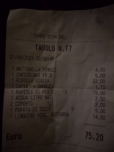 Conclusione: Carpe Diem ha delle potenzialità, ma l’esperienza lascia molto a desiderare. Con un miglioramento nella gestione del personale, nella qualità delle portate e nella manutenzione degli spazi, potrebbe davvero essere un punto di riferimento. Così com’è, però, non è un ristorante che...