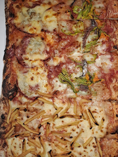 Read moreSiamo stati in 4 a mangiare in questa pizzeria indicataci come una delle migliori soprattutto in merito alla cottura in forno a legna senza bruciature. Purtroppo la nostra esperienza non è stata tra le più felici. Innanzi tutto non capisco il discorso dei due turni, 19:45 / 21:30. O meglio, lo capisco per la gestione del locale ma non per la comodità dei clienti! Se arrivi un po' prima (almeno per il secondo turno) tocca fare anticamera fino all' ora X, così come è capitato a noi ed altri. Una volta messi a sedere siamo partiti subito male: dei signori con un cane di media teglia accanto a noi si sono alzati e la bestiola ha visto bene di dare due belle scrollate facendo volare di tutto in giro e mio suocero ha dovuto subito farsi cambiare il piatto. Abbiamo poi ordinato la pizza con la modalità a kg( mai sentita) dove per un kg (adatto per 4 persone) puoi però scegliete solo 3 gusti ( io farei almeno 4 così ognuno può scegliere il suo gusto). Ma il peggio purtroppo è stato all' arrivo della pizza che, nonostante fosse buona e servita a tempo di record (meno di 10 Min cronometrati da quando ci siamo seduti) , sotto era nera!!!( Allego foto). Onestamente erano le 21:40, avevamo fame e abbiamo azzannato subito la pizza accorgendoci solo dopo delle condizioni della base. Fatto notare alla cameriera, ci ha detto che si scusava e che se ce ne fossimo accorti subito ce l' avrebbe fatta rifare. Ad ogni modo questo primo giro ce lo siamo mangiato così, ma dopo abbiamo provato a prenderne un altro mezzo kg (2 gusti disponibili) chiedendo esplicitamente al cameriere che facessero attenzione alla cottura. In effetti questa seconda trance era meglio, almeno per 3/4 di pizza(allego altra foto). Abbiamo concluso con un baba' passabile anche se dentro, aprendolo, risultava "secco" (intendo la pasta del baba' , come se fosse di qualche giorno prima , questa la mia impressione). Che dire la pizza è buona come sapore, e l'abbiamo digerita anche abbastanza bene tutto sommato, ma una pizza così bruciata sotto non è accettabile. Dei ragazzi vicini a noi che ci hanno sentito lamentare, clienti locali e abituali, ci hanno detto che avevano riscontrato la pizza bruciacchiata nelle ore di punta,infatti era sabato ore 21 e 30 e loro erano...