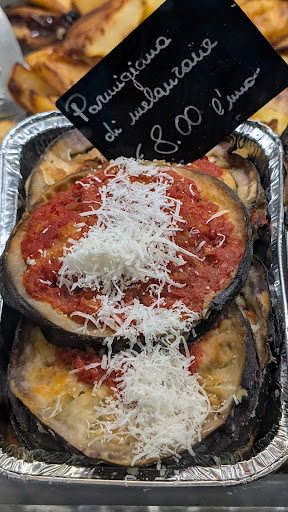 Read moreКулинария, где можно быстро перекусить, потому что блюда готовы, выставлены на витрину, и их вам сразу разогреют. Скорость и наглядность выкладки, пожалуй, единственное достоинство этого места. Из всего, что мы попробовали (5 блюд), все было очень пересолено или страшно пересолено, особенно баклажаны (melanzane). Про куриный шницель в панировке ребенок сказал, что курица резиновая и у них в школьной столовке готовят лучше. Более или менее съедобная была только треска (merluzzo), но и она довольно соленая. В конце было такое ощущение, что нализался соли. Но обслуживание приветливое и приятное. За это +1 общий балл! Судя по местной публике, которую я обычно здесь наблюдал, проходя каждый день, это заведение для местных. Заходят, болтают с хозяйкой, многие берут навынос. То есть итальянцы реально так питаются, а довольно высокая оценка на Гугл-картах - свидетельство того, что это им нравится. Если вы любите все соленое, в масле, панировке или уксусе или вы - итальянец, вам должно...