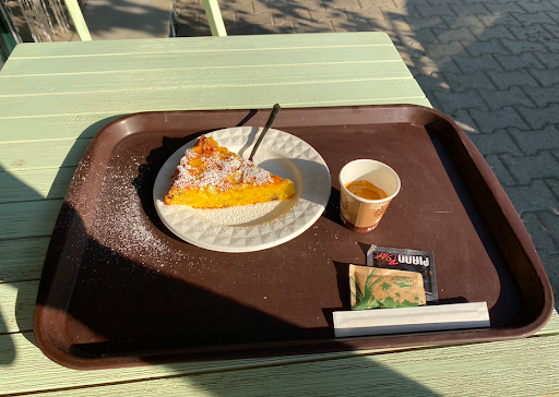 Read moreSono passato davanti a questo locale per andare alla pineta dove si teneva il Festival dello Sport. Non servendo la colazione in albergo ho deciso di fermarmi in questo locale per prendere qualcosa da accompagnare al caffè. Devo dire che la torta di mele che ho preso era davvero di qualità! Mi sono accomodato in un tavolino all'aperto e mi è stata servita al tavolo insieme al caffè. Sarei voluto tornare per assaggiare una delle altre che avevo visto esposte in vetrina, purtroppo però mi sono fermato solo per un paio di giorni. Peccato! Non mancherò di tornarci quando ricapiterò in questa...
