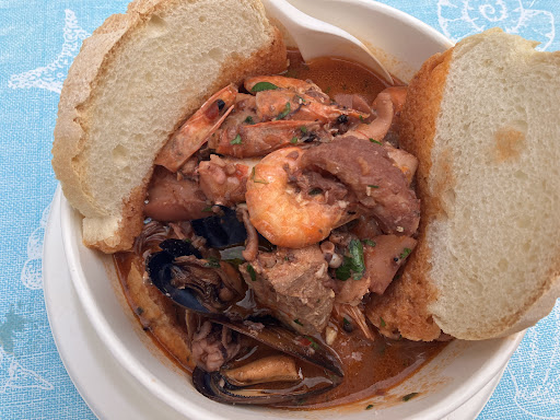 Read moreMamma mia! Was für ein cacciucco! Ich wusste nicht, worauf ich mich einlasse als ich es bestellte und machte mir Gedanken, ob es für ein Mittagessen reicht😊 Signora in der Küche, wo ich meine Bestellung abholen sollte (es ist Selbstbedingung) fragte mich, ob ich Brot dazu haben möchte und als ich es bejahte, legte sie zwei Scheiben in den Teller herein und tat darauf erst die Brühe, dann verschiedene Meeresfrüchte und Fischstücke auf und legte noch zwei Stücke Brot direkt in die Brühe. Das Ganze ergab eine köstliche Kombination, denn das Brot sog die kräftige Brühe auf. Das war meine beste Fischsuppe bis jetzt. Und es muss nicht auf Porzellantellern serviert werden, um exzellent zu schmecken! Meine Sorgen waren unberechtigt. Die Portion war groß genug, um gut satt zu werden. Complimenti an die hervorragenden...