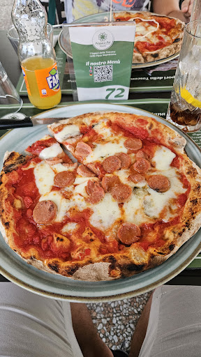 Read moreSono stata varie volte in questo locale, devo dire che la location è sempre bella, c'è un bello spazio con un bel giardino, anche lo spazio giochi (seppur lasciato al caso dato il pavimento mezzo rotto, però devo dire che non tutte le pizzerie lo hanno), le mie 3 stelle però sono dovute dal fatto dei prezzi assurdi, fino a qualche anno fa non erano così, capisco l'aumento di tutto, ma qua si parla di un aumento dei costi un po' alto, c'è poca scelta sulle pizze classiche che comunque a parte la margherita vengono tutte sui 10€ e, poi ci sono le pizze un po' più particolari ma vengono veramente tanto (17/19€), alla fine ad oggi tutte le pizzerie hanno pizze particolari ma in media non costano più di 13/14€, poi a parte questo dato che le pizze non sono economiche mi aspetto una qualità super, invece sono arrivate le pizze mezze bruciate sotto (capisco che c'è gente, ma comunque portare le pizze mezze bruciate anche no). Servizio niente da dire, a parte qualche disattenzione ma nella confusione ovviamente possono succedere. Purtroppo penso che non ci tornerò più, uno per i prezzi, perché la pizza buona la fanno anche da altri parti a prezzi migliori, due perché proprio per quello che vado a pagare per me la pizza non meritava...