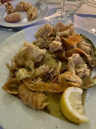Our dinner was in the delightfully lit garden. The attention and friendliness of the waiter and waitresses was very good. We were served complimentary Prosecco and a little tomato amuse bouche straight away, which always puts one in a good mood. We had one serve of the little savoury flan to start. For secondi we ordered the frittura and the grigliata, and both were fresh, crispy and lightly done. Both were excellent. For dolci we shared a vaniglia pannacotta, but this was disappointing- too solid and shop like. But every other aspect of our evening was wonderful, so highly recommended. Wine was also...
