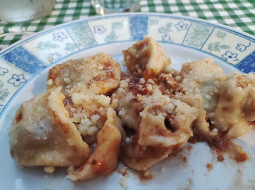 Il cibo era scadente quasi immangiabile con porzioni piccolissime, per 5 persone hanno portato un vassoio di Tortelli con dentro forse 20 25 pezzi,