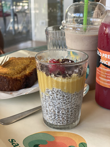 Such a delicious place to grab food at the beach. We finished a walk and this place had everything we needed. They had delicious coffee and pastries, but they also had smoothies and a full menu of brunch stuff. My wife got the chicken salad and said it was really fresh and delicious and I got the the fried halloumi with honey. I've been dreaming of it since then. Our smoothie was more liquidy than I would prefer, but it was very tasty. This place is expensive, but that makes sense for the location...