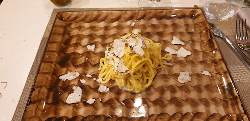 Il ristorante già dall'esterno si presenta bene, ci è piaciuto anche l'interno. Il locale è accogliente ha un suo stile rustico con qualche dettaglio moderno. Molto bella la saletta sulla sinistra. Noi abbiamo cenato nella sala a destra, carina con tavoli decapati stile shabby. Il menù non è vastissimo ma le proposte sono tutte invitanti. Per mio gusto gradirei sempre la proposta dall'antipasto misto nel menù, per assaggiare un po' tutto ma questo non c'era. Abbiamo preso un antipasto con stracciatella al tartufo e acciughe. Poi tagliolini funghi e tartufo e ravioli con sugo di selvaggina. Tutto buonissimo, i primi leggermente scarsi come porzioni. Di secondo abbiamo preso 2 tagliate di scottona semplice e una al tartufo; molto buona, tenera e gustosa. I dolci erano discreti ma forse si potrebbe affinare questo aspetto. Il servizio professionale, la cameriera gentile e svelta. È stata una piacevole sorpresa che lo chef sia passato per chiedere e darci accoglienza e spiegazioni. I prezzi di partenza sono abbastanza alti se non si prenota con the fork. In generale è stata una...