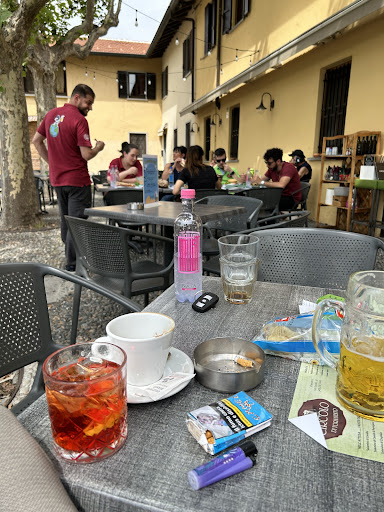 Read moreFrequento il Circolo di Tornavento da molti anni perché si trova sulla piazzetta di Tornavento, un piccolo accrocco di case della frazione di Lonate Pozzolo che nel corso degli anni è diventata un punto di ritrovo per i frequentatori del parco del Ticino e delle sponde ciclabili e pedonali del fiume e del canale Villoresi. La piazzetta della chiesa è diventata negli anni una piacevole terrazza panoramica che si apre sul decorso del Ticino e offre una veduta spettacolare del Monte Rosa e delle Alpi piemontesi nelle belle giornate di sole. Il Circolo offre ristoro ai "viandanti" e ai ciclo turisti in modo semplice e piacevole sui tavoli all'aperto o nelle 2 salette interne ristrutturate di recente. Il bancone all'interno ricorda un pub anche per le spillatrici e per il piano con sgabelli che consentono le consumazioni più veloci. Il menù comprende panini e piadine da farcire in svariati modi e da personalizzare, insalatone, taglieri di salumi e formaggi e qualche piatto caldo come l'hamburgher con chianina, lo stinco alla birra con patate e il rosti. A rotazione si possono trovare altri piatti caldi sul menù al tavolo. Discreta scelta di birre sia alla spina che in bottiglia nazionali ed estere e aperitivi classici e pestati. Gustatevi un aperitivo oppure uno spuntino veloce. Da provare il tagliere di lardo con miele oppure il salamino di cinghiale con parmigiano. Gustosissime le ribs alla birra o le mantovanelle al sugo. Se vi piace lo stinco qui è sempre molto buono così come il piatto bavarese di wurstel e crauti accompagnati da salse e dal brezel. Non è alta cucina ma il gusto non manca. La giovialita' dei ragazzi al servizio e la location vi regaleranno sicuramente una sosta piacevole e da ripetere anche in compagnia di amici. Il Circolo è molto gettonato consiglio pertanto di prenotare soprattutto nei fine settimana e nelle belle giornate per evitare file interminabili. Un plus è la possibilità di portare con voi i vostri amici a 4 zampe anche all'interno. Sono assolutamente pet frendley e troverete all'ingresso sempre una ciotola di acqua fresca...