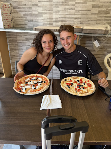Iniziamo con la pizza, inaspettatamente buona, particolare perchè croccante, non è la classica pizza italiana, infatti il pizzaiolo è straniero ed è gestita da stranieri. Tavolini all'interno abbastanza puliti, ma è evidente che è più una pizzeria da asporto. Unica pecca molto importante da non sottovalutare assolutamente è il bagno!!! Purtroppo era sporco, senza sapone e senza carta per asciugarsi le mani! Io non so se quel bagno lo usano anche loro, però se fosse così, la pizza la fate con le mani sporche??? Mi auguro di no! Quindi vi raccomando la pulizia del bagno!!!! Per il resto abbastanza bene. Non ho visto l'interno del forno quindi non posso giudicare. Prezzo nella media delle pizzerie da asporto! Se vogliono crescere dovete migliorare! (Iniziando dal...