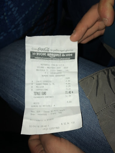 Read moreTRUFFA!!!! Esperienza da dimenticare, atteggiamento del personale estremamente scortese, derisorio e decisamente truffaldino nei confronti della clientela che ignara del sovrapprezzo del servizio al tavolo, poiché non è apposto nessun cartello e nel mio caso avvalorato dall’assenza del menu sul tavolo ingenuamente scelto, mi sono trovato a pagare un’acqua,un dolcino, un caffè e un cappuccino 11,40€ (scontrino allegato) e a fronte delle mie rimostranze mi sono visto ridere in faccia dal personale che non ha mancato di trattarmi con un miserabile per la mia richiesta di delucidazioni...puro gusto è un locale del brand autogrill, insegna che sinora non mi ha MAI deluso ma qui ahimè e tutto da rivedere in primis il training del personale disattento, svogliato è scortese! Non mancherò di scrivere anche direttamente ad autogrill per rimarcare la mia delusione e insoddisfazione di...