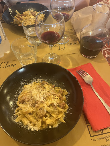Read moreTema: "Toscana chiama Transilvania" Cena per due, giugno 2022 Prima di scrivere la mia ho voluto leggere alcune recensioni, ho letto quelle a una stella e l'elemento ricorrente è "titolare burbera o scortese", beh, non sono d'accordo, la titolare (che poi non è la titolare ma la gestrice) è "originale", io non l'ho trovata sgradevole, anzi, ci abbiamo con versato volentieri Penso sia peggio quando si trova gente musona o che se la crede troppo. Io credo che i posti in cui si decide di andare per la prima volta vadano saputi "interpretare" ed ordinare di conseguenza; detto questo noi siamo stati bene e abbiamo mangiato bene. A onor del vero devo dire alcune cose: l'incipit del menù dice che saranno servite porzioni abbondanti e così non è stato, le porzioni erano normali, tempi di attesa un po' lunghi, anche il vino rosso toscano della casa non era speciale, cameriere rumene e non professioniste, ma questo non vuole dire sgradevoli, anzi, la poca esperienza è stata oscurata dalla buona volontà. Quattro stelle le merita comunque perché ho trovato quello che mi aspettavo e ho mangiato bene. Pagella: Location 6/7 Personale/Servizio 6 Cibo 7e1/2 Prezzo 7 Rapporto qualità/prezzo7 Se ti piace la mia recensione metti...