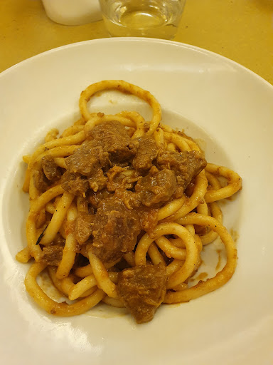Read moreÈ la prima volta che siamo stati in questo ristorante, che da due anni ha cambiato gestione, perché la precedente titolare è voluta andare in pensione dopo tantissimi anni di attività. Quella sera siamo stati gli unici a mangiare in questo ristorante e il fatto non proponeva bene. Abbiamo ordinato dei crostini di fegatini toscani ed erano buoni, poi abbiamo preso i pici con il cinghiale e purtroppo siamo rimasti delusi. Dopo 30 anni che mangiamo i pici in Toscana, non ci era mai capitato che ci portassero un piatto di spaghettoni lunghi grossi e lisci con il sugo di cinghiale completamente asciutto, senza olio, che avevo difficoltà ad attorcigliarli alla forchetta. È stato anche difficile mandarli giù, perché per quanto erano secchi e non scorrevano. Per farli scendere abbia dovuto bere. Ci avevano detto che erano fatti in casa, ma per essere così perfetti dovevano essere stati fatti con la macchinetta. Forse, se fossero andati al pastificio Dante a 30 metri dal ristorante, sicuramente avrebbero fatto più bella figura. A quel punto abbiamo ordinato il tiramisù. Si vedevano i savoiardi che erano imbevuti di caffè al punto giusto, ma la crema era quasi inesistente e si vedeva completamente la forma del savoiardo. Alla fine abbiamo pagato e siamo usciti alle 21.30. Quando siamo ripassati pochi minuti dopo avanti al ristorante con la macchina, avevano spento tutte le luci della sala pranzo e avevano chiuso la porta. È stata...