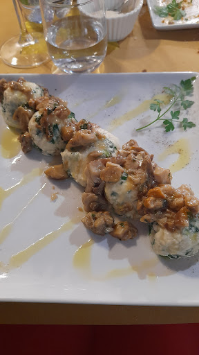 Read moreGezien de goede reviews hier gaan lunchen. Italië en eten gaat samen, maar niet perse op deze plek. Wat wèl gewoon goed is, is de sfeer en het aardige personeel. Het eten, onze hoofdgerechten, viel ons helaas erg tegen. We hadden ieder 2 gerechten; de één: Salade Ruge, gewoon een eenvoudige salade met tomaten, mozarella, wortel, tonijn, olijven en heel veel ijsbergsla. Eigenlijk een mix tussen Italiaans en Grieks 🤔. Plus: patate di mama, wèl erg lekker, gegarneerd met verse rozemarijn en salie. De ander: ravioli gevuld met kaas en een saus van champignons met truffel: dit smaakte absoluut als een kant en klaar gerecht met nauwelijks truffel, gepureerde champignons, was nauwelijks warm en was echt een teleurstelling. De spinazie daarentegen was vers en smaakvol. De Vermentino huiswijn smaakte goed, het tapbiertje was volgens de ober een Paulaner maar smaakte niet naar bier! De drank wordt in het naastgelegen cafe getapt. Zoals gezegd; uiterst aardig personeel! alleen waarom iedereen zo enthousiast is over het eten, is mij...