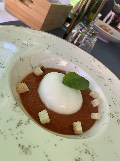 • Tortelloni di patate con asparagi in due consistenze: Ottimi, delicati e leggeri probabilmente qualche asparago in più non avrebbe guastato per regalare quella consisteza scrocchiarella che "forse" volevano creare come seconda consistenza, la crema era veramente gustosa ogni boccone regalava una carezza al palato dolce e delicata.