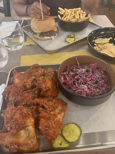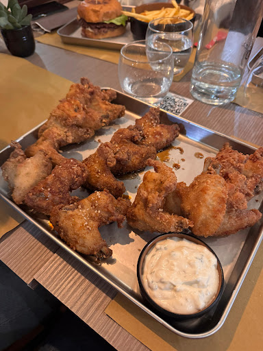 Ieri sono venuto con alcuni amici a mangiare qui. Abbiamo deciso di condividere delle cose ed ho iniziato a prendere la degustazione di alette, €26, con 3 gusti a scelta, però sia quello sale e pepe e sia quello con limone, aglio, rosmarino ed olio mi sembravano molto simili, non male però avrebbe avuto più senso un sapore più deciso in quella con limone, l’altro gusto arrivato era alla soia, buono. Poi abbiamo preso il Cuppi's Chick con sovracoscia di pollo con cheddar, cipolle agrodolci, pancetta, salsa della casa, €15.50 e poi abbiamo preso anche l’ Oklahoma Style Smash con di carne, cheddar, cipolle macerate cotte insieme alla carne, bacon, salsa della casa, €15.50. Premesso che il cibo non mi sembrava così male, però sinceramente pagare per 12 alette di pollo 26€ mi sembra davvero una cosa esagerata e spropositata, cioè mezzo kg di alette di un solo gusto costano 15 circa, se invece fai la diversa degustazione di più gusti allora sale a 26€, con delle porzioni che mi sembravano uguali, perché l’altro coppia di amici invece ha preso una porzione di pollo fritto al gusto piccante… il panino col pollo era abbondante come ripieno, quindi diciamo che li i 15€ sono anche passabili, e compresi di patatine, però mi sono ritrovato dentro questa salsa della casa, strana a mio parere, che rovinava tutto il sapore del panino, e non l’ho apprezzata affatto, lo smash burger invece era più piccolo a confronto e non mi ha fatto impazzire, con una salsa cheddar davvero misera dentro ed un pezzetto di bacon contato… per 15€…. Personale molto cordiale e posto alla fine carino fuori il traffico della città però i prezzi sono da riguardare o le porzioni di...